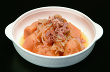 レトルト 肉じゃが(一人前) 老若男女に人気の「肉じゃが」を国産原料でつくりました。温めるだけの簡単調理で手作り風の美味しさをお楽しみいただけます。 主な原材料 じゃがいも、玉ねぎ、白滝、豚肉 内容総量 220g JANコード 4902940001702 煎り玉子入り肉じゃが 煎り玉子やほうれん草を加えるとより彩りが良く、美味しく召し上がれます。 栄養分析 熱量(kcal) 118.0 炭水化物(g) 16.0 たんぱく質(g) 3.3 食物繊維(g) 1.2 脂質(g) 4.3 食塩相当量(g) 1.5 (製品100gあたり)